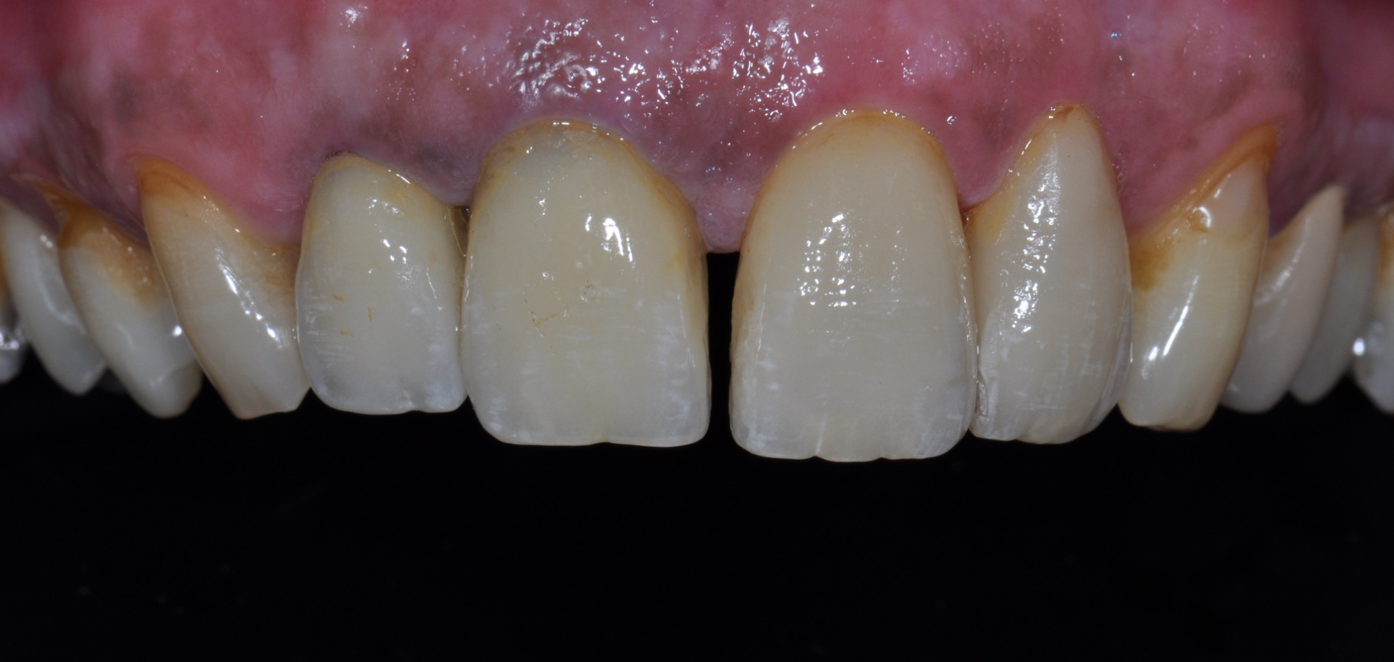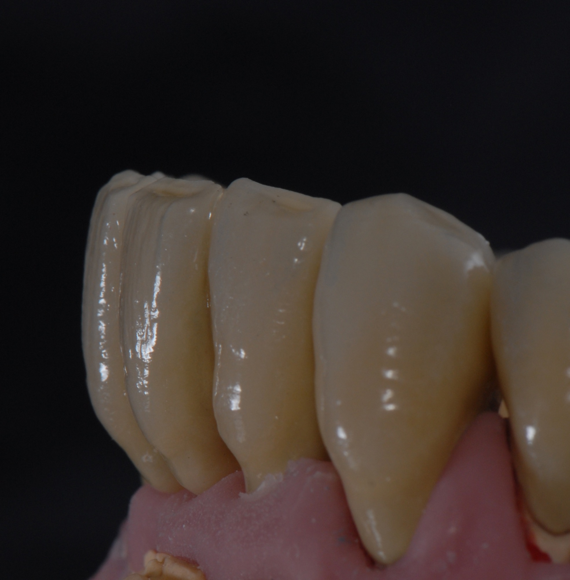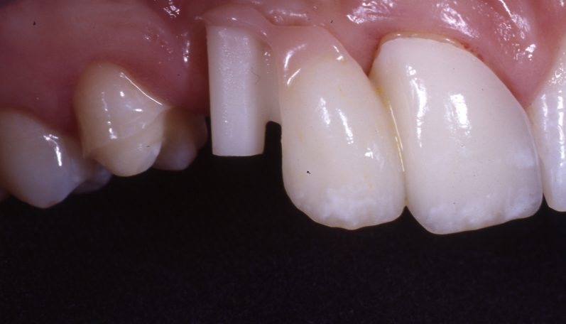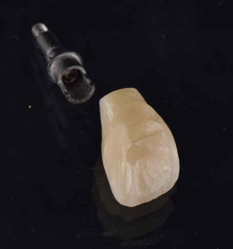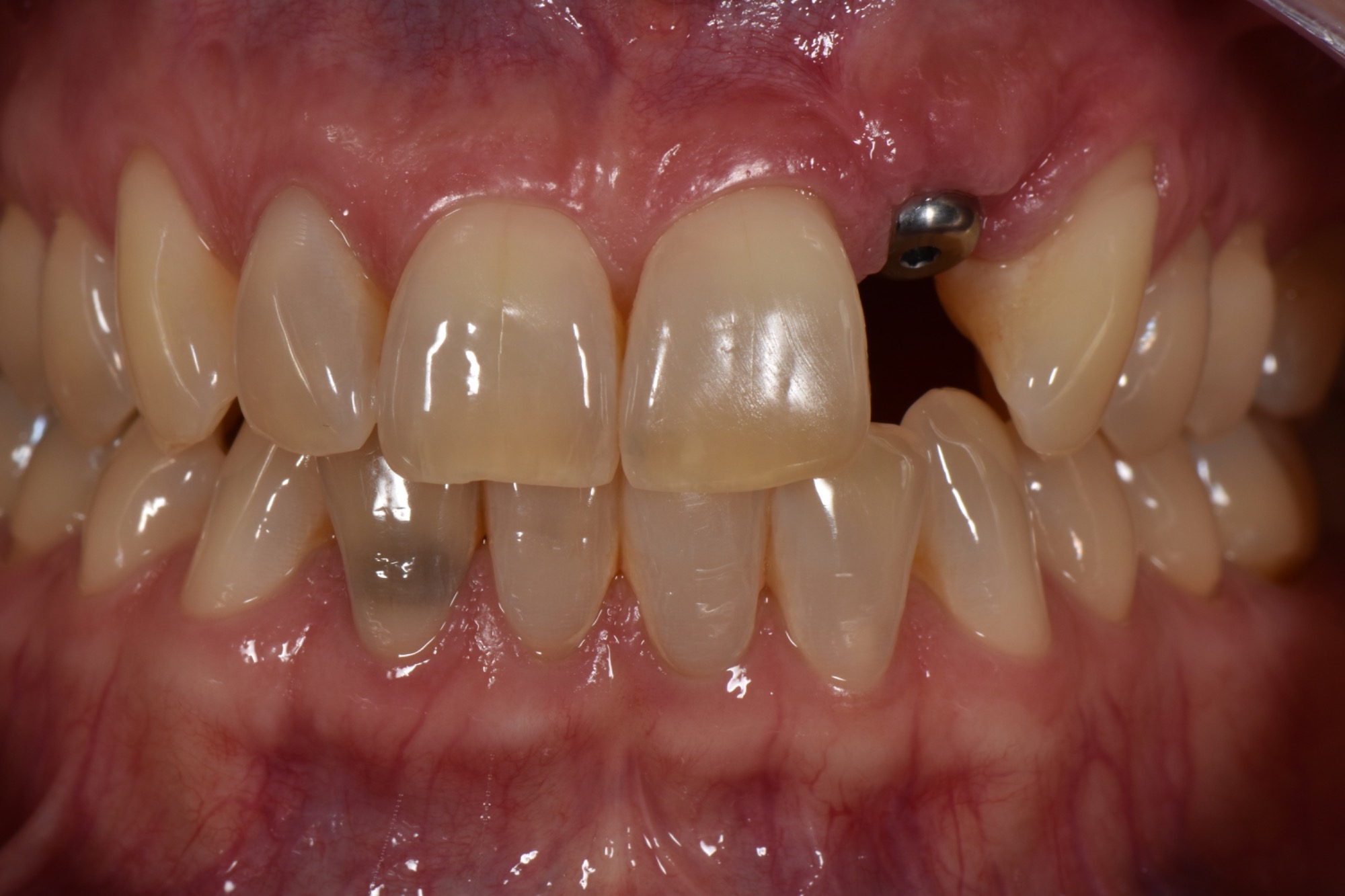 Frontzahnkrone auf Implantat zum Lückenschluss des seitlichen Frontzahnes.
