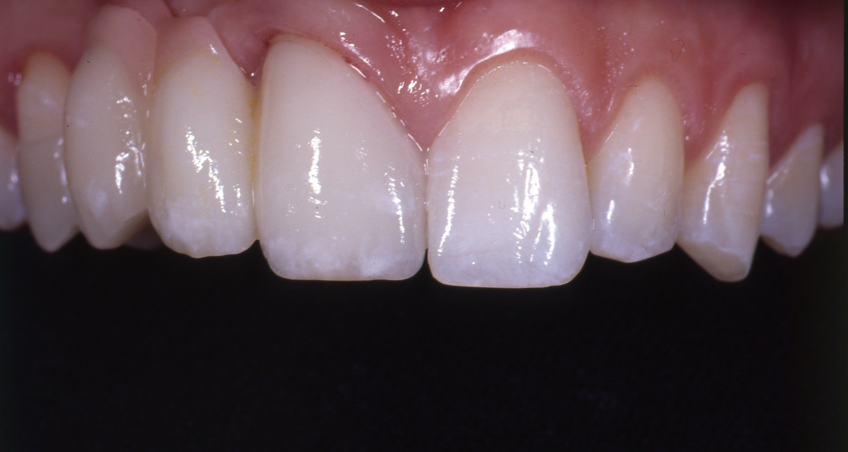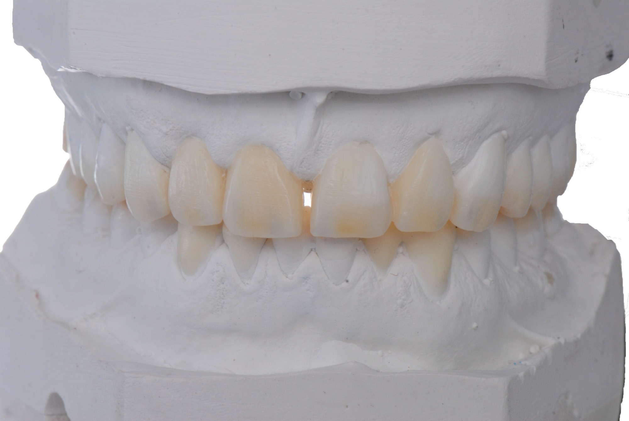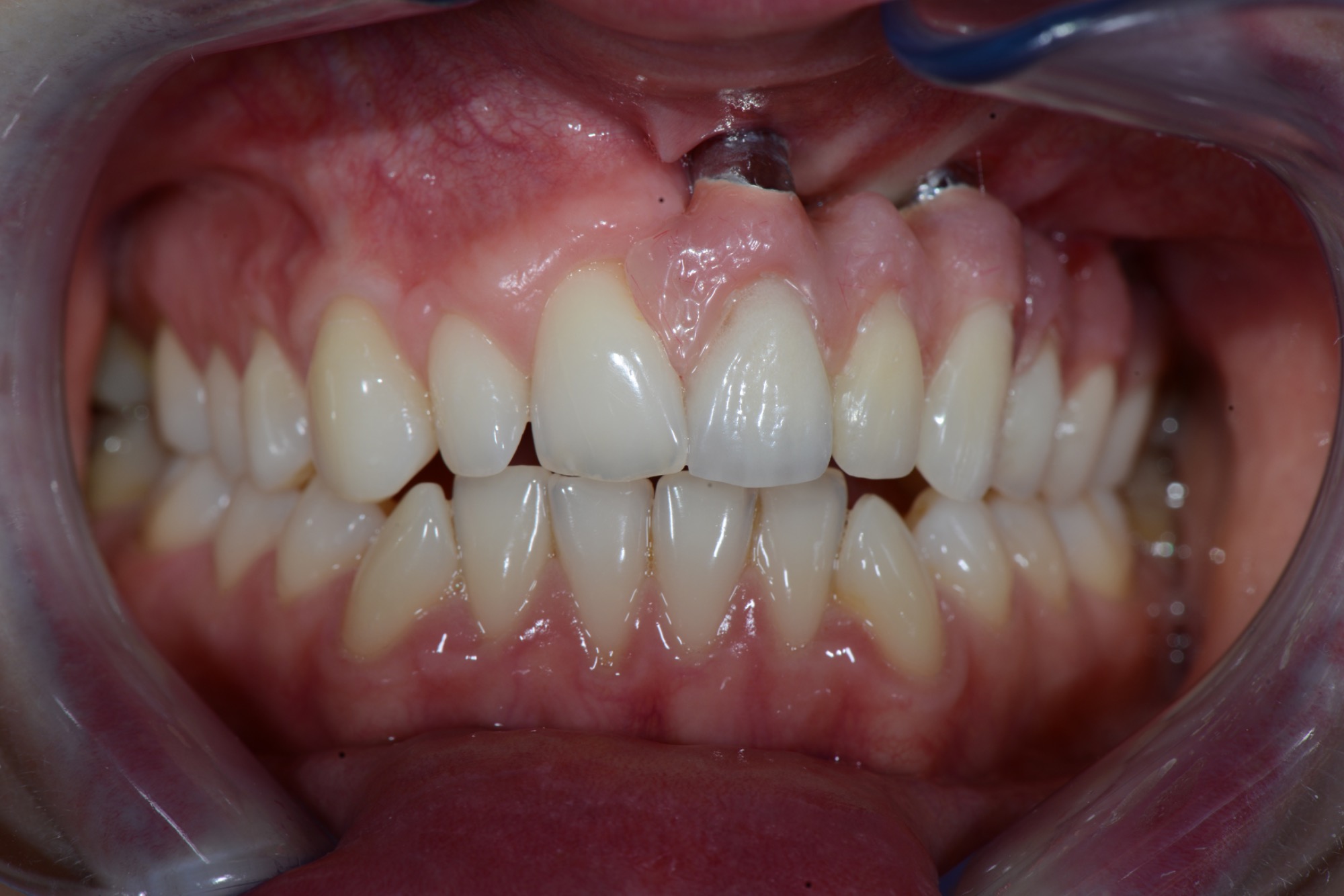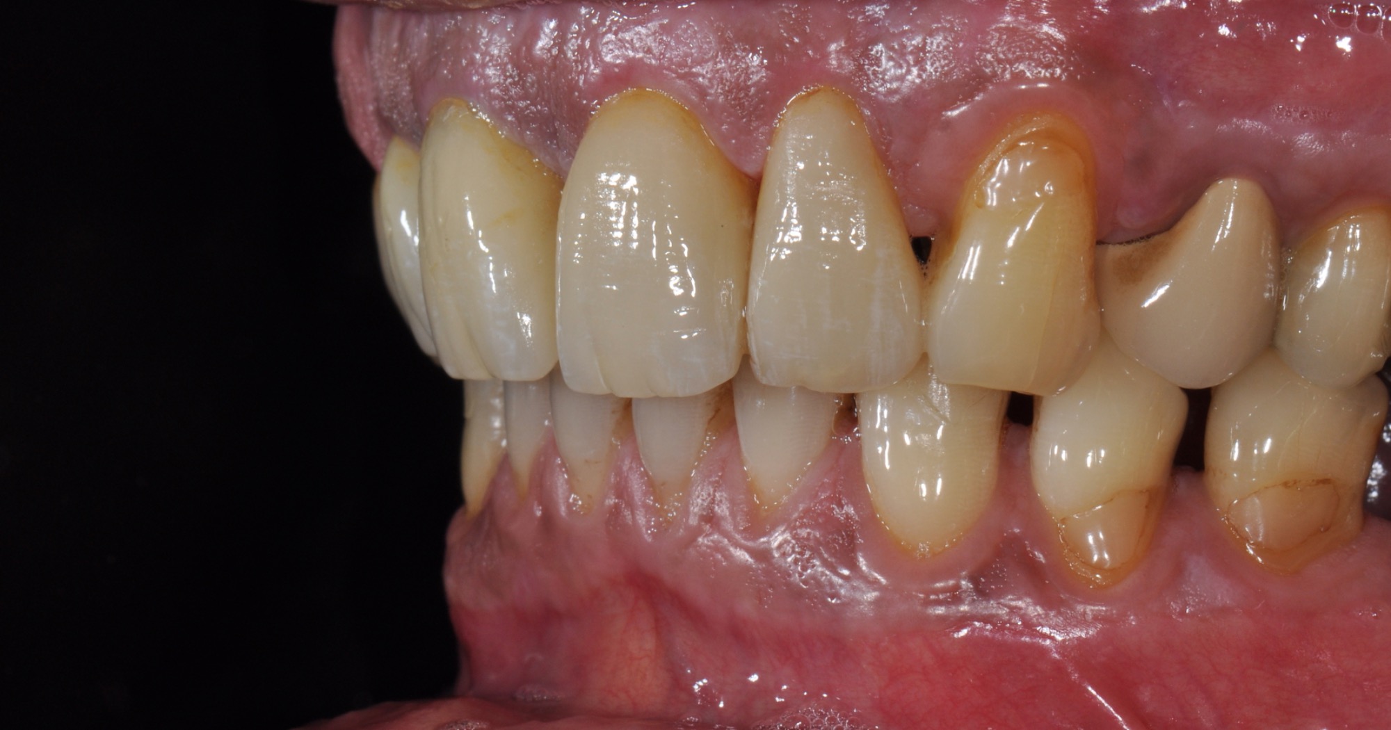 Frontzahnkrone auf Implantat zum Lückenschluss des seitlichen Frontzahnes.