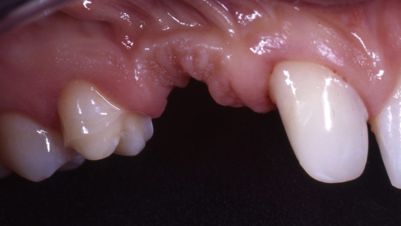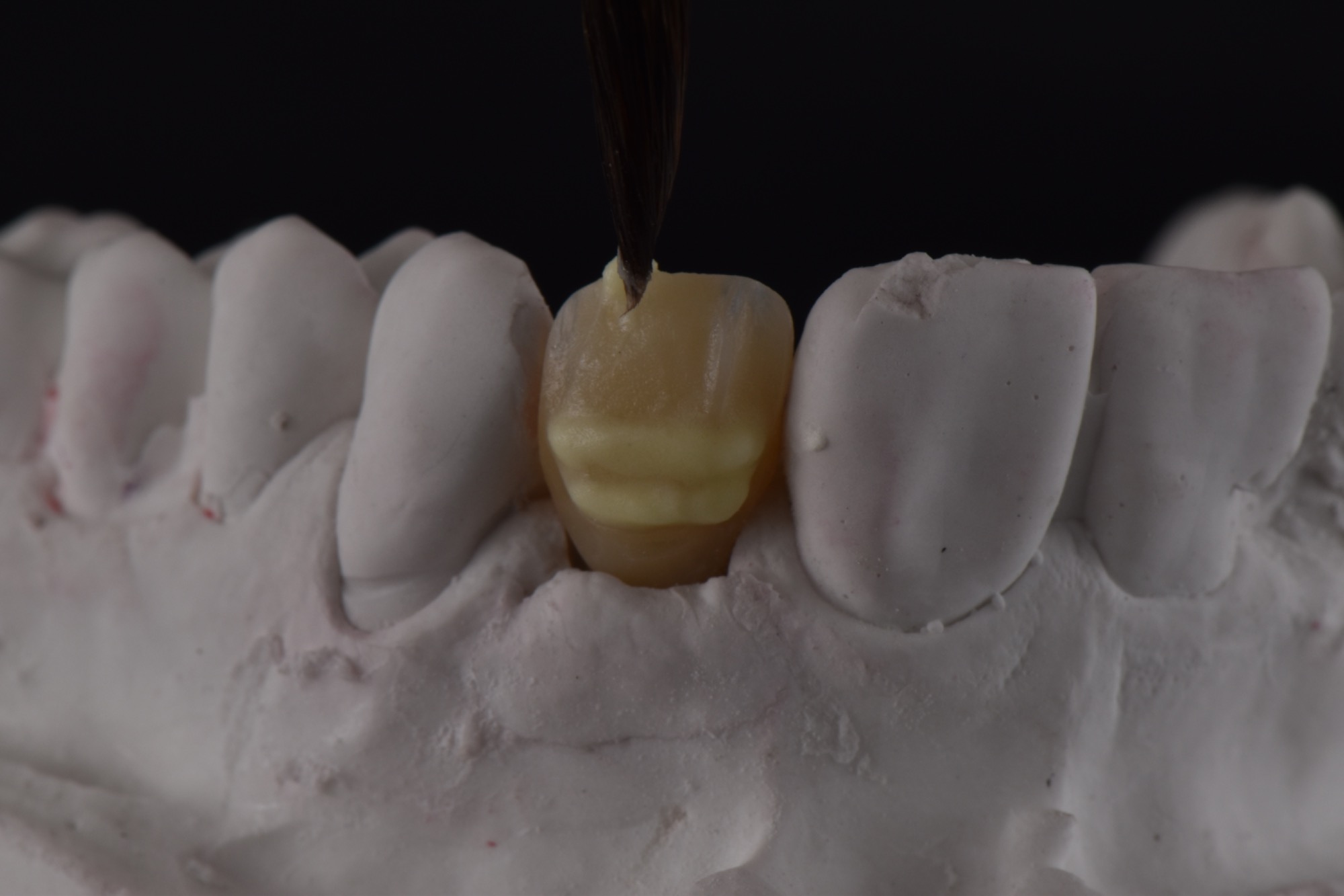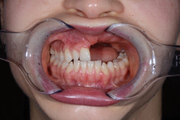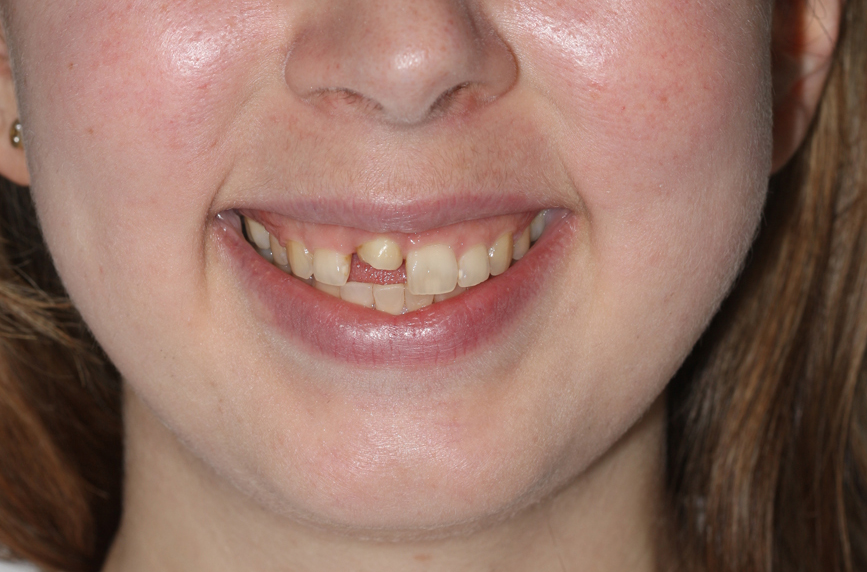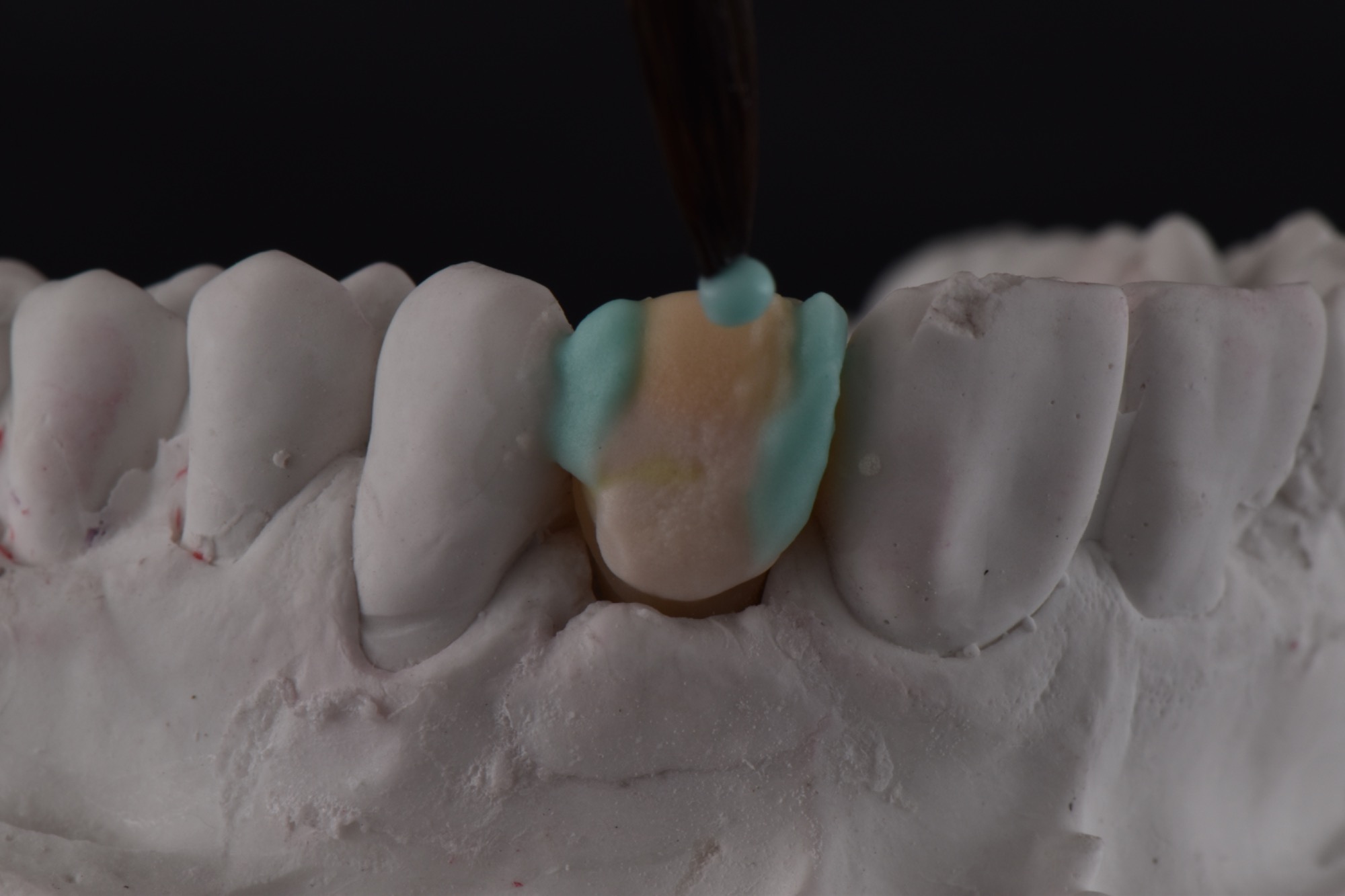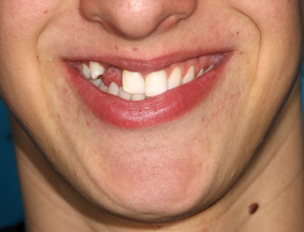Frontzahnkrone auf Implantat zum Lückenschluss des seitlichen Frontzahnes.