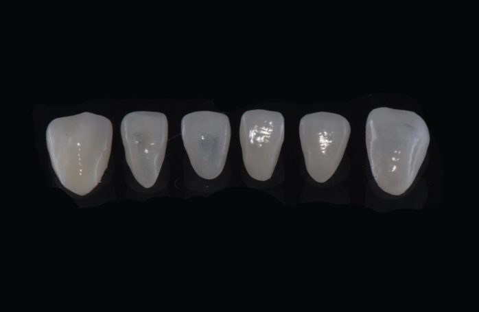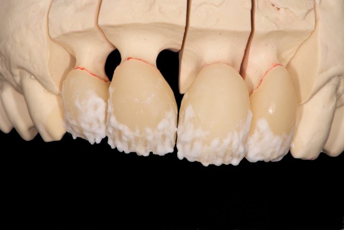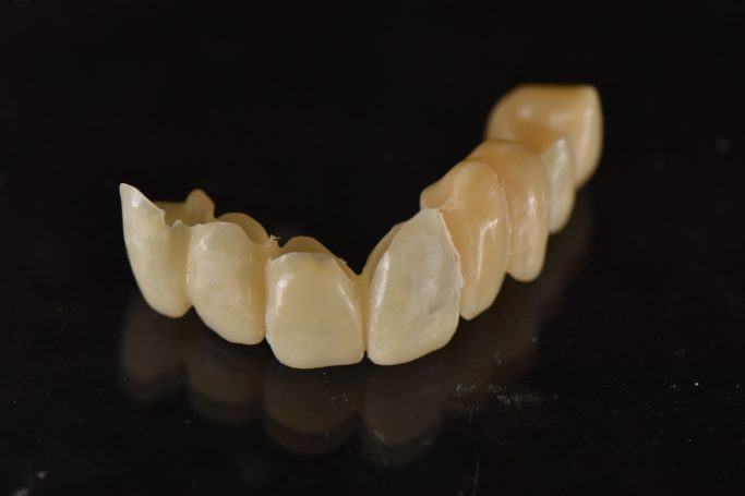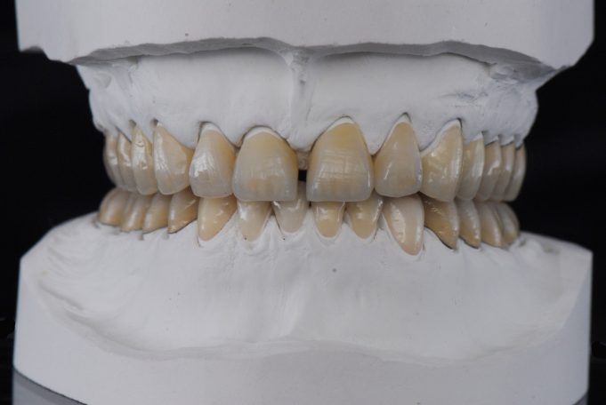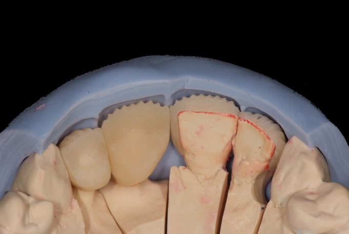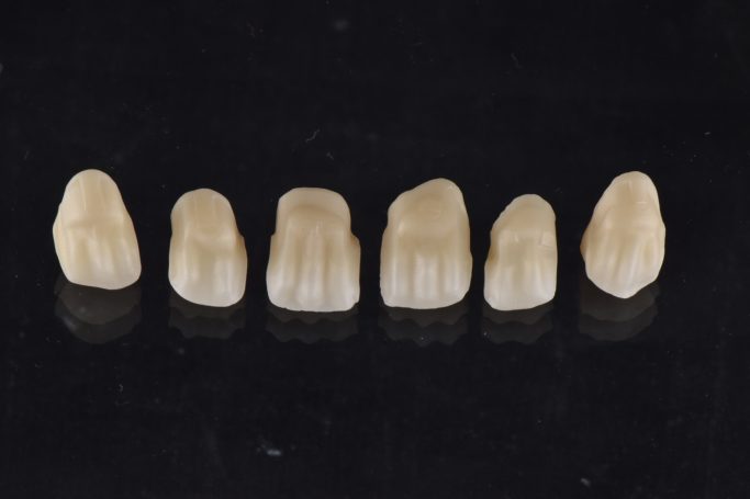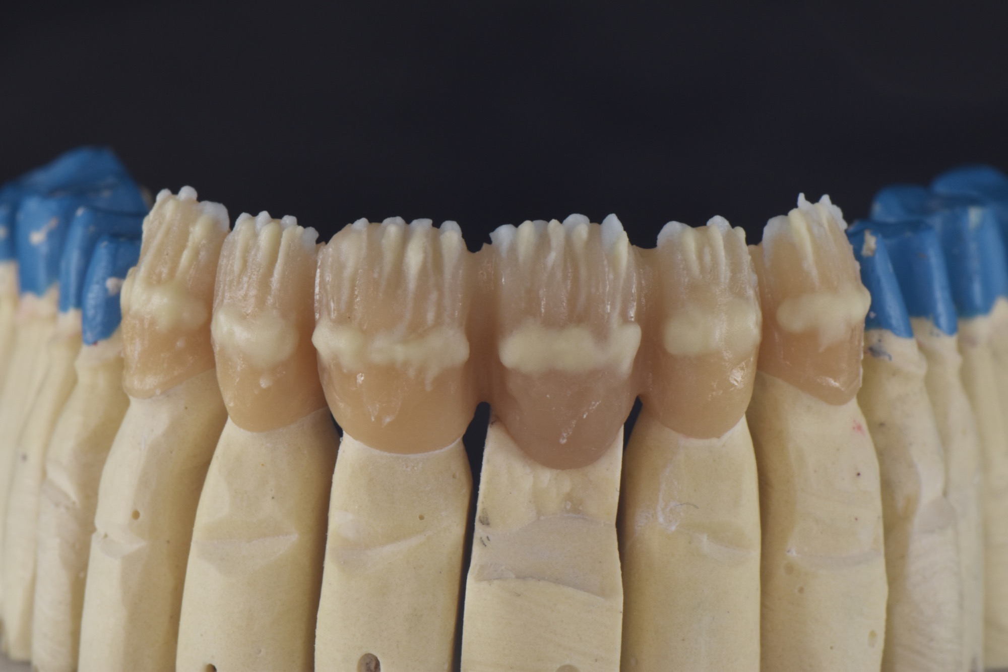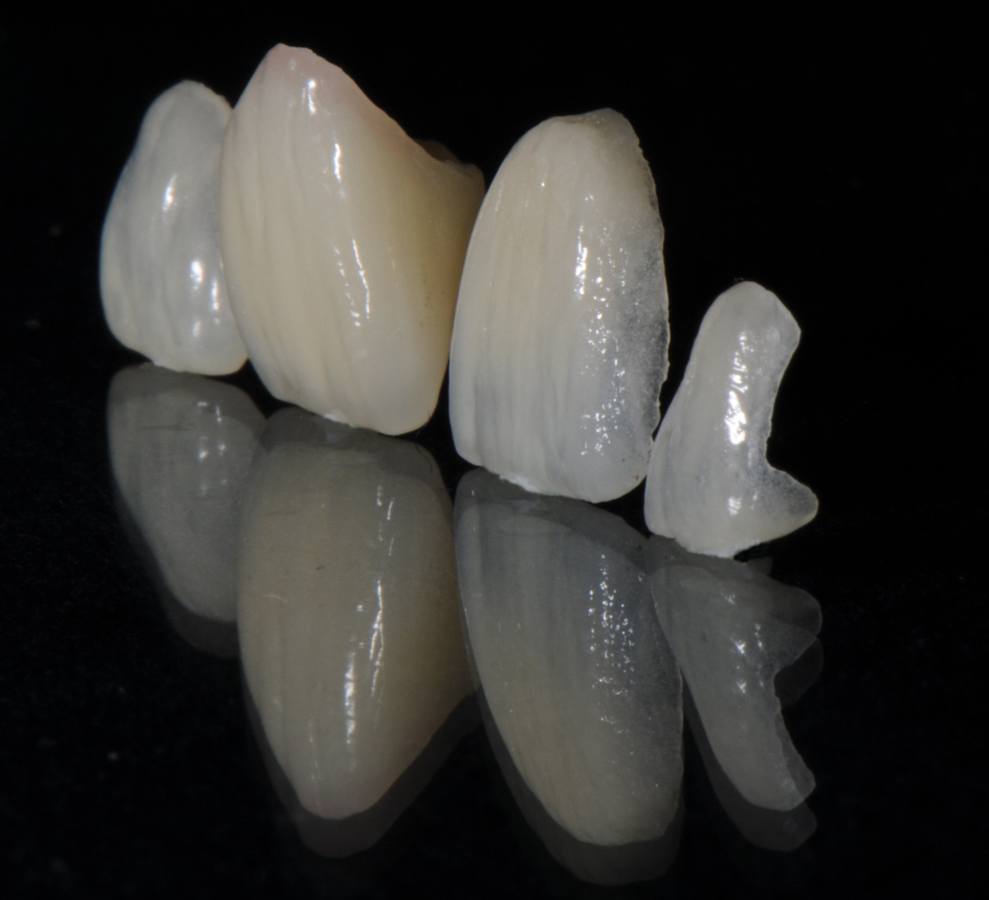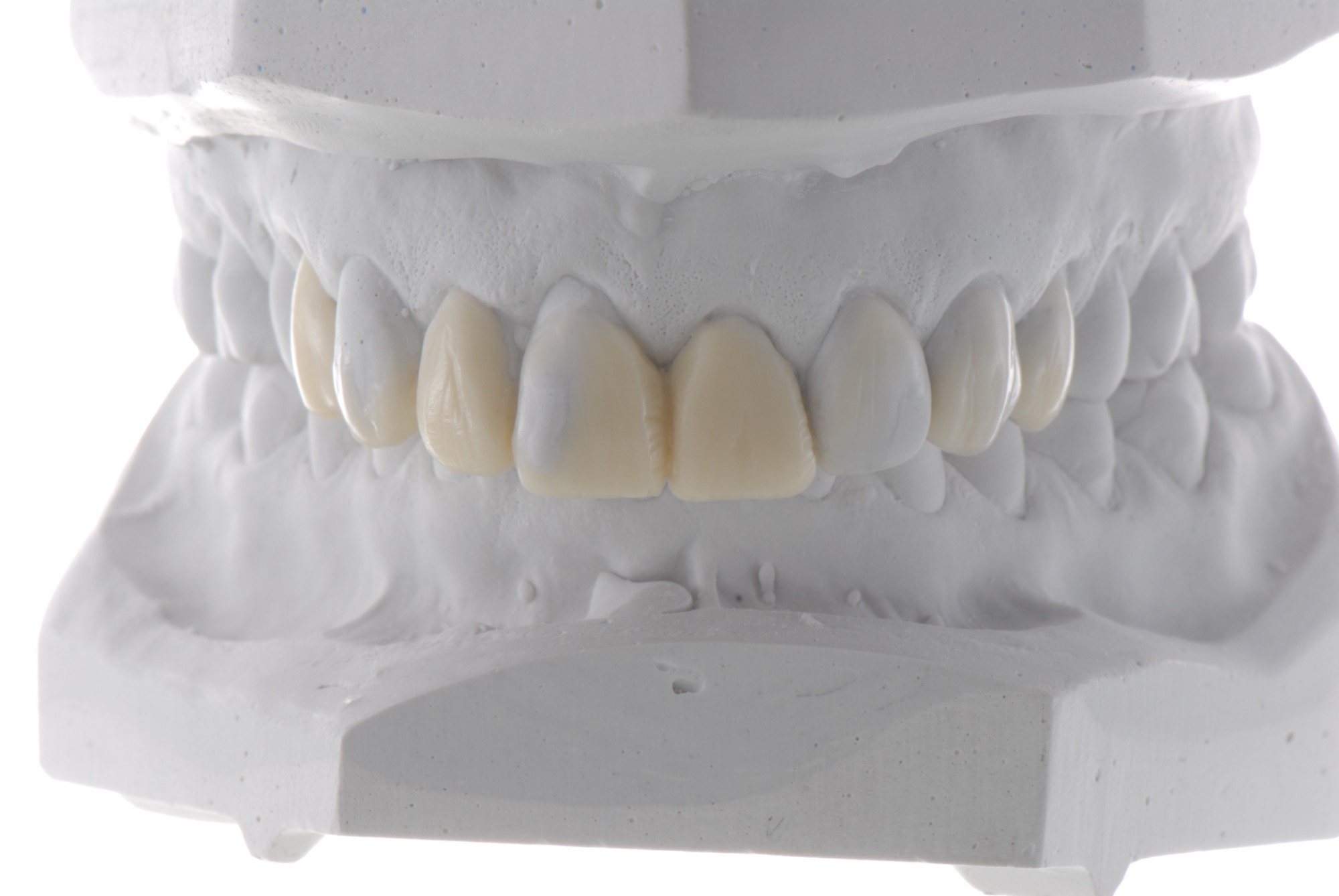 Metallfreie Frontzahnkronen mit individueller keramischer Verblendung.