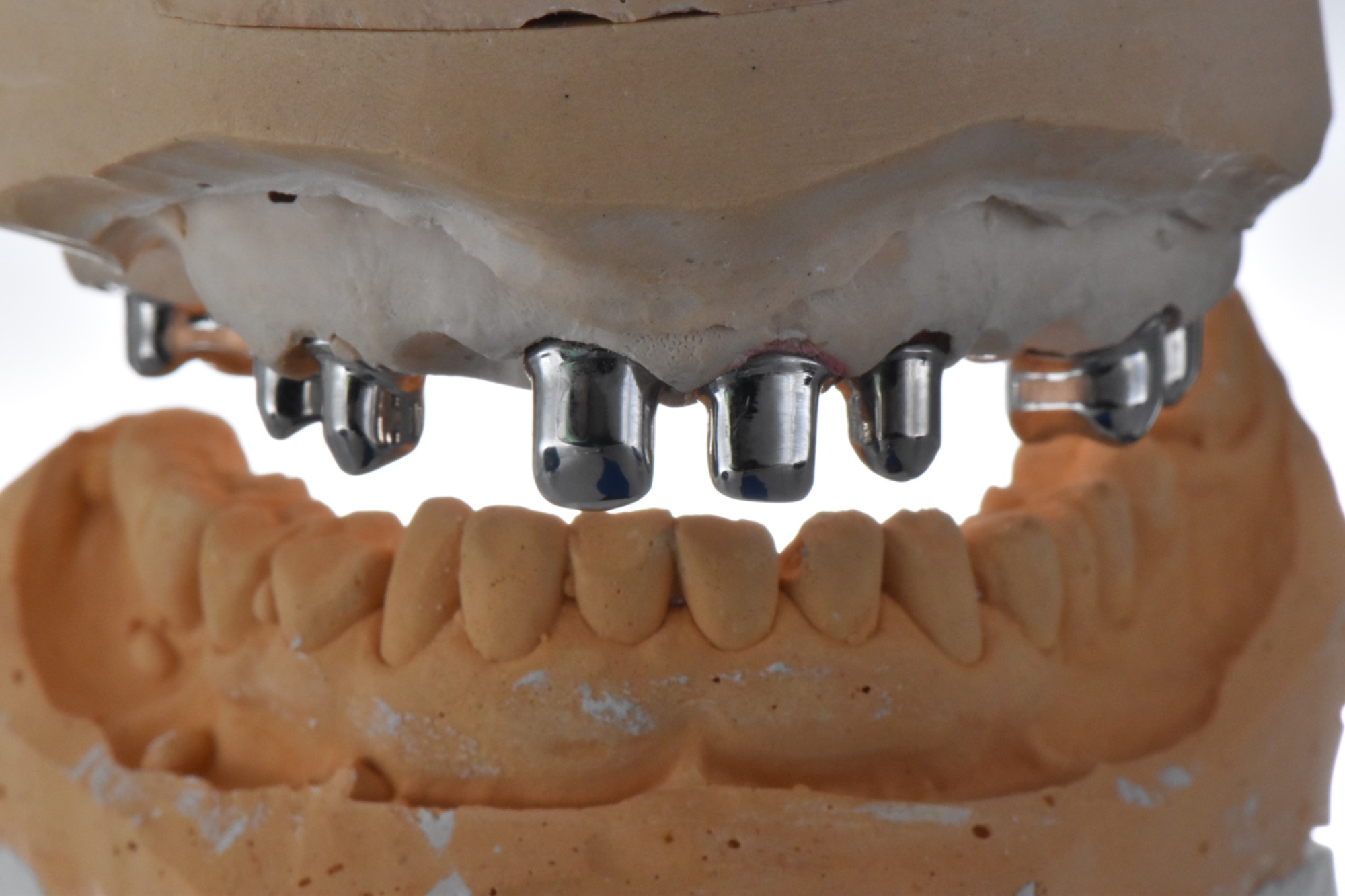 Teleskopierende Oberkieferbrücke. Wie die eigenen Zähne, aber einfach zu reinigen.