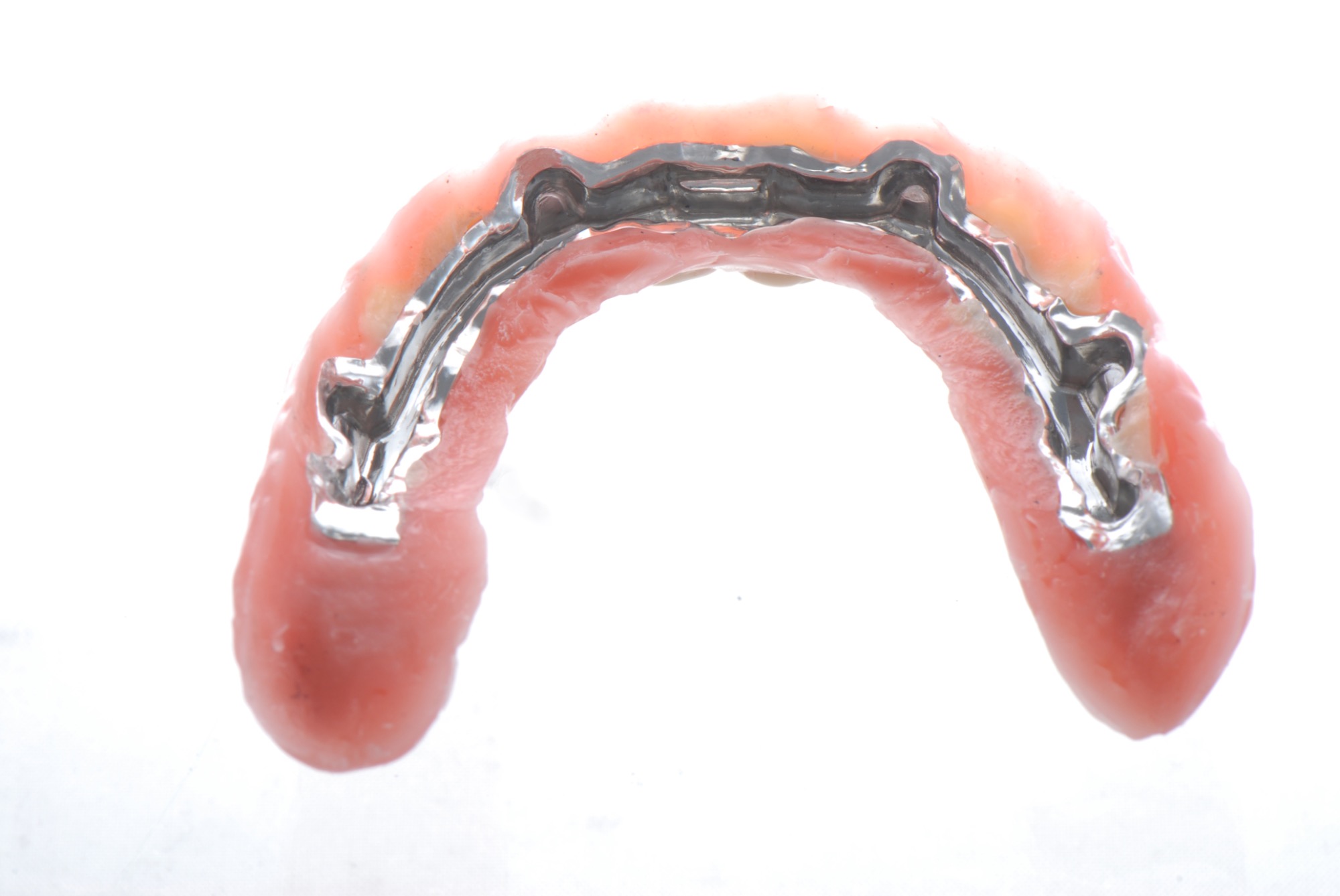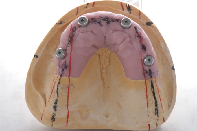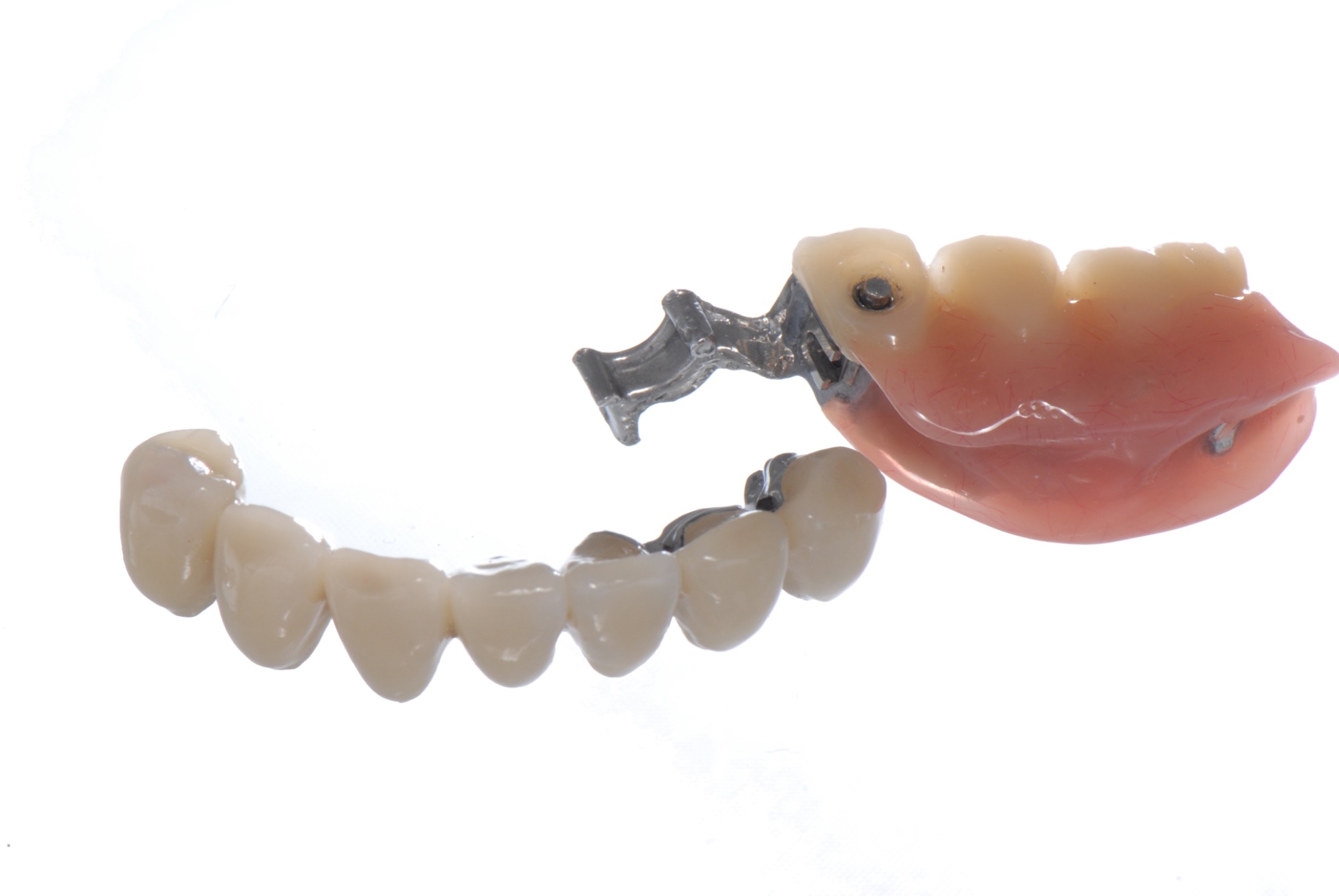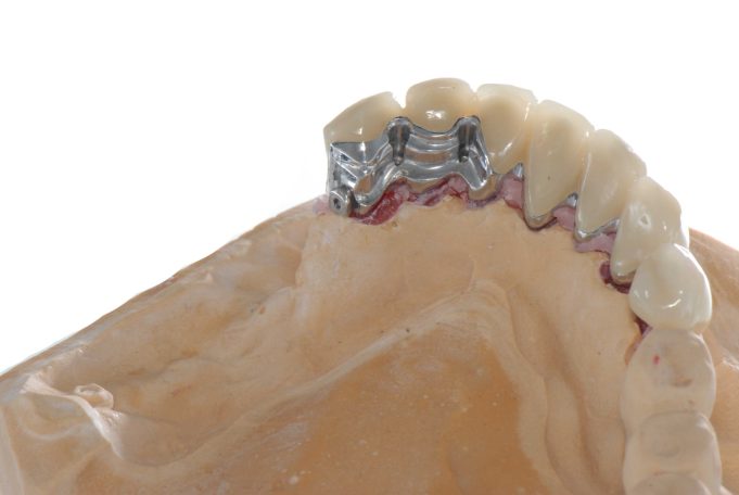 Implantsteg verankerte Brücke. Für den Patienten abnehmbar, aber der Tragekomfort von festen Zähnen.