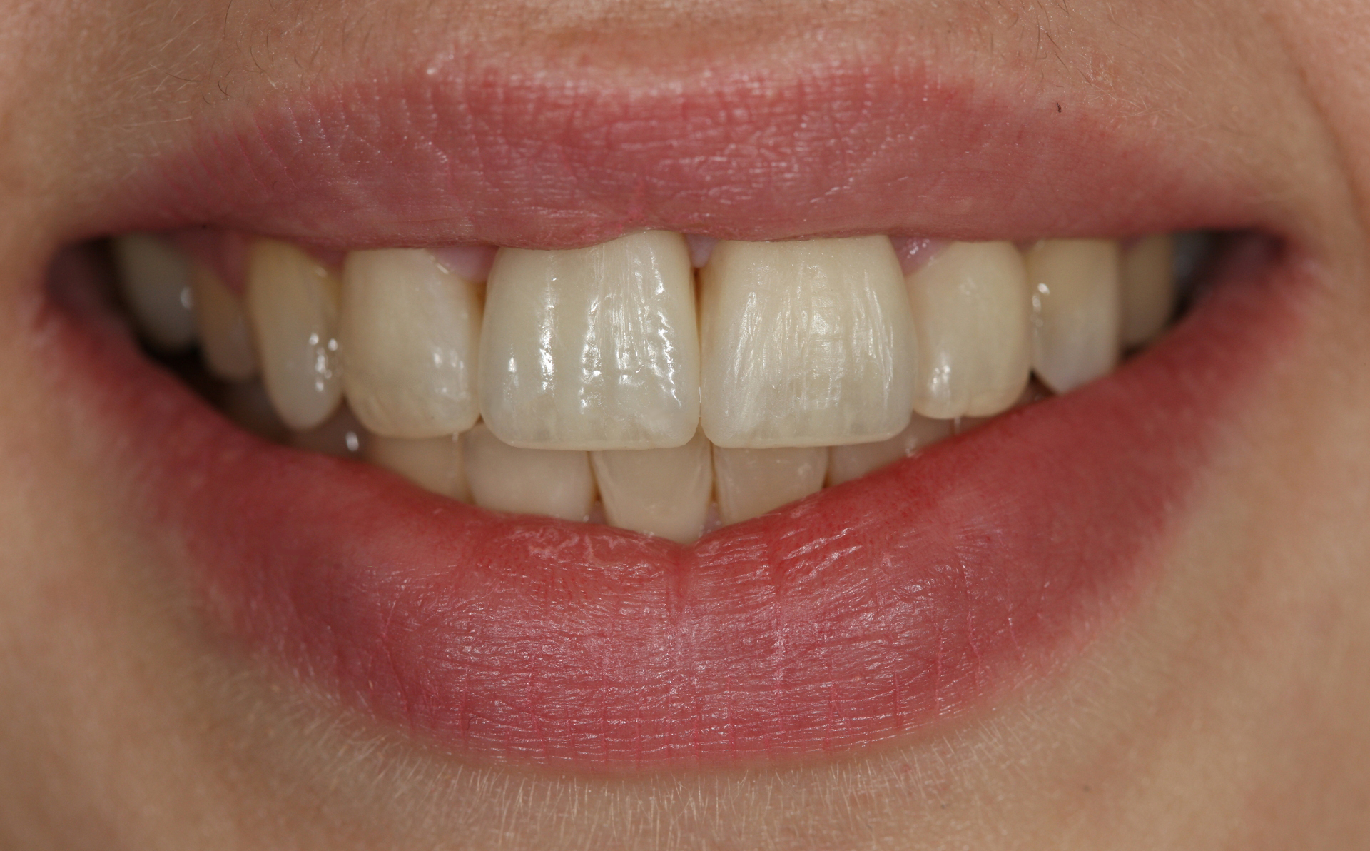 Veneerversorgung mit non-invasiven Veneers zur Verbesserung der Ästhetik.